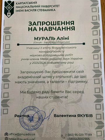 Під час підбиття підсумків конкурсу-захисту одинадцятикласники отримали особливу пропозицію від Карпатського національного університету імені Василя Стефаника. Представники закладу запросили юних науковців продовжити свій академічний шлях у спільноті, де ідеї мають значення, а таланти отримують підтримку та можливості для розвитку. Так університет відкрив перед випускниками перспективу подальшого зростання й реалізації їхніх наукових амбіцій.